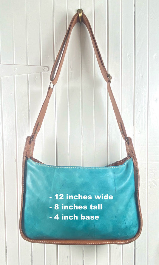 Saddle Bag in Teal Blue & Tan - The Lily-13