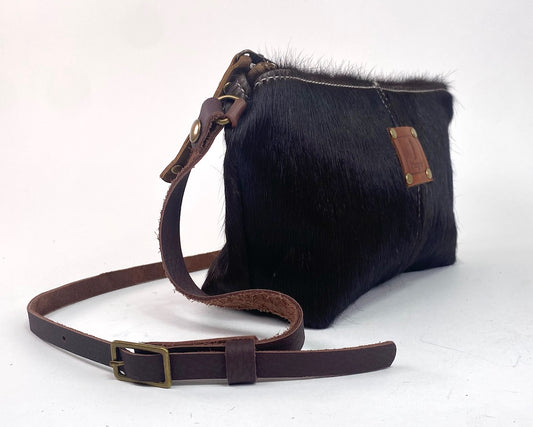 Tagalong Purse in Hair-On Cowhide Leather - Dark Brownish Black
