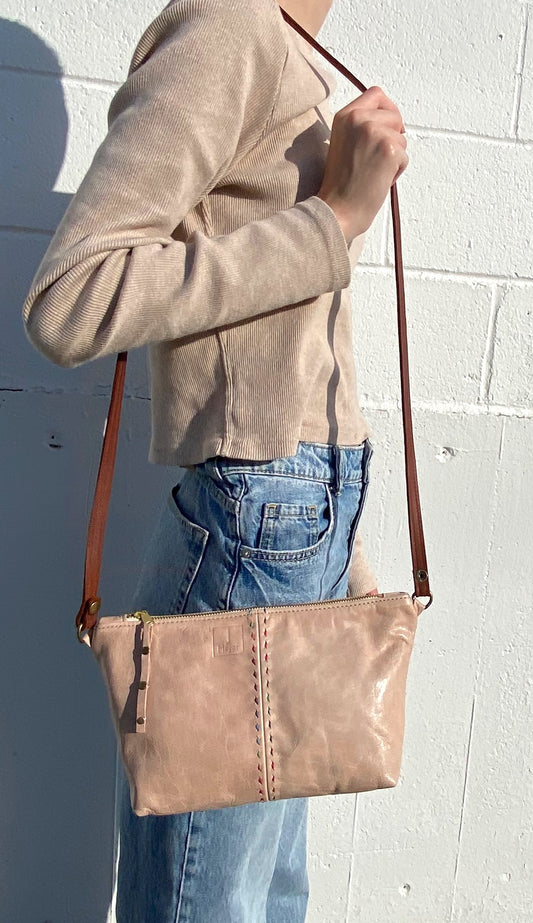 Tagalong Purse in Buff Beige with Saddle Stitch Detail