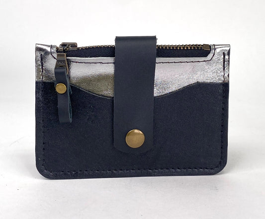 Credit-Card Guard Minimalist Leather Wallet in Black with Silver