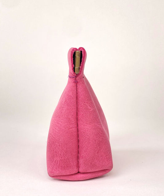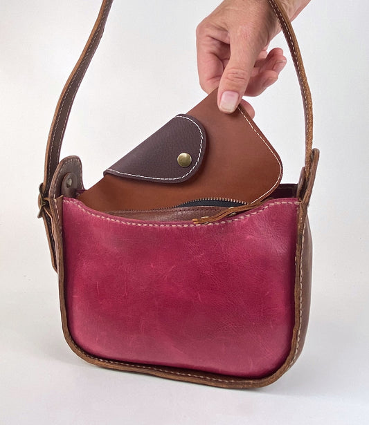 Lily 8 Compact Shoulder Bag Hand Stitched in Magenta & Tan