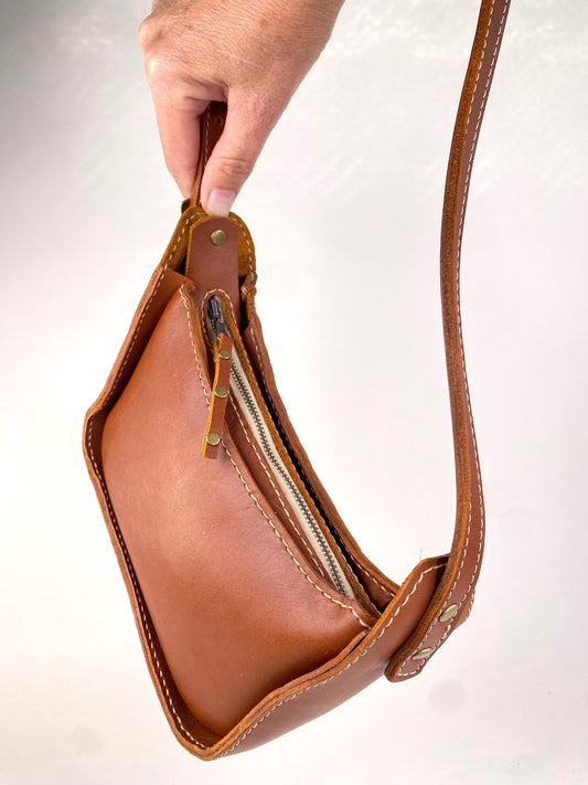 Lily 8 Compact Shoulder Bag Hand Stitched in Honey-Tan Leather