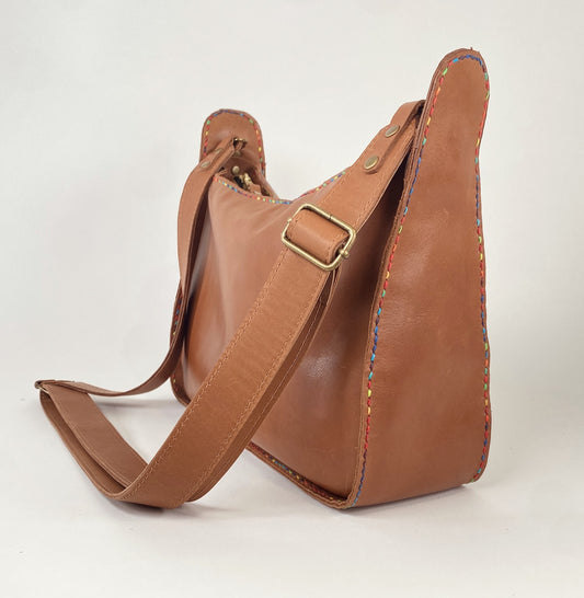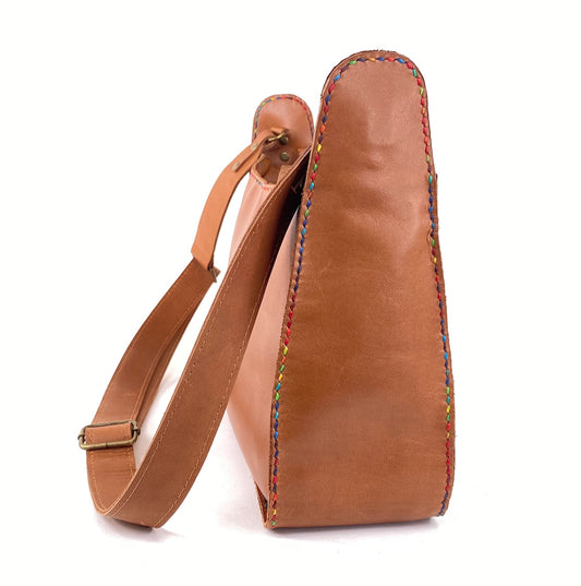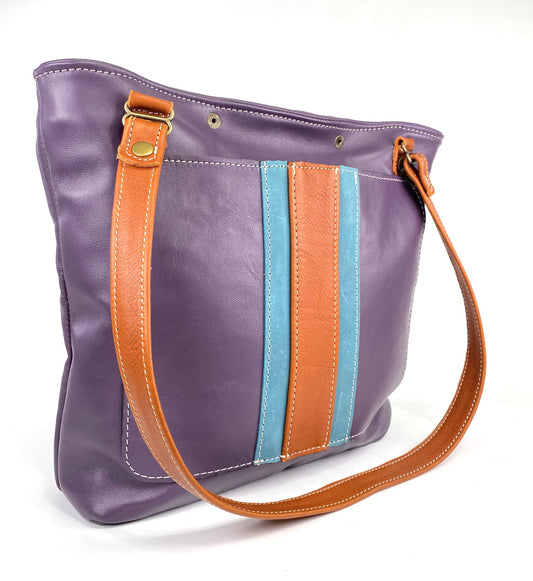 Purple Lambskin Leather Tote Bag with Tan/Teal Accent