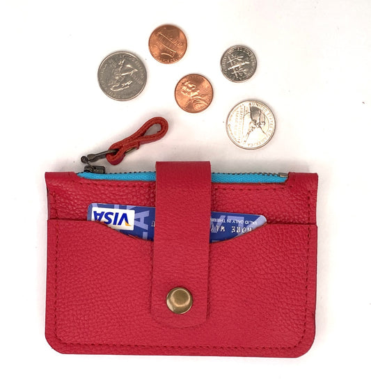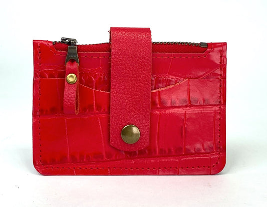Red Croc Embossed Leather Minimalist Snap Wallet